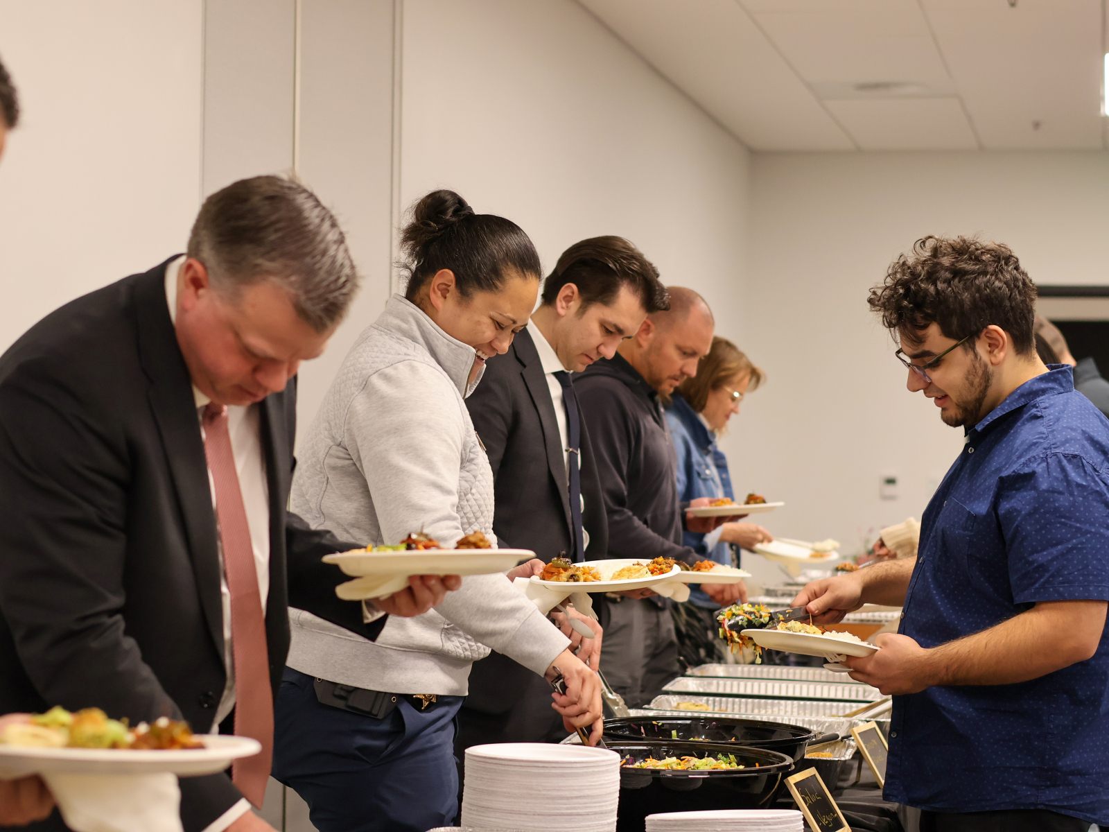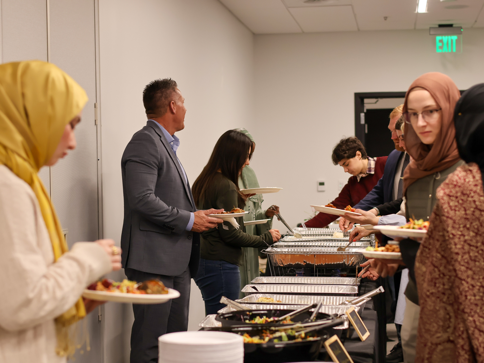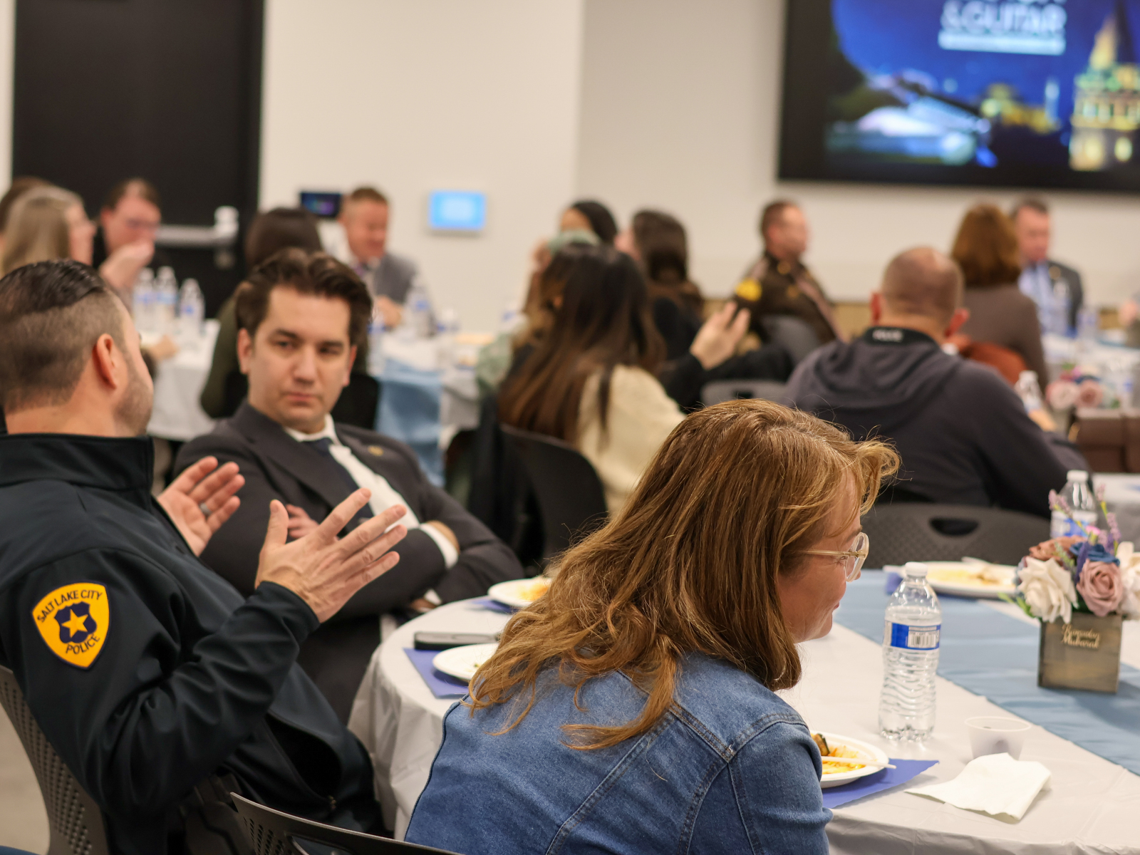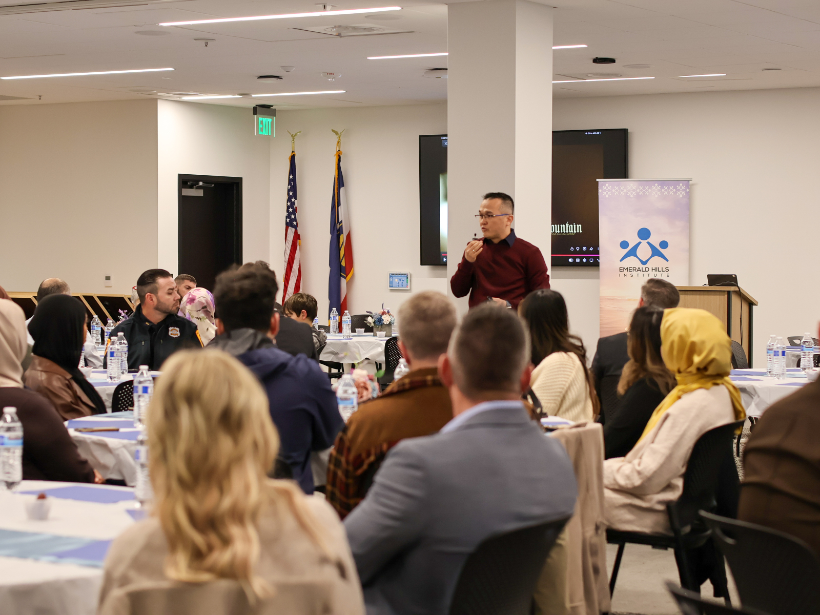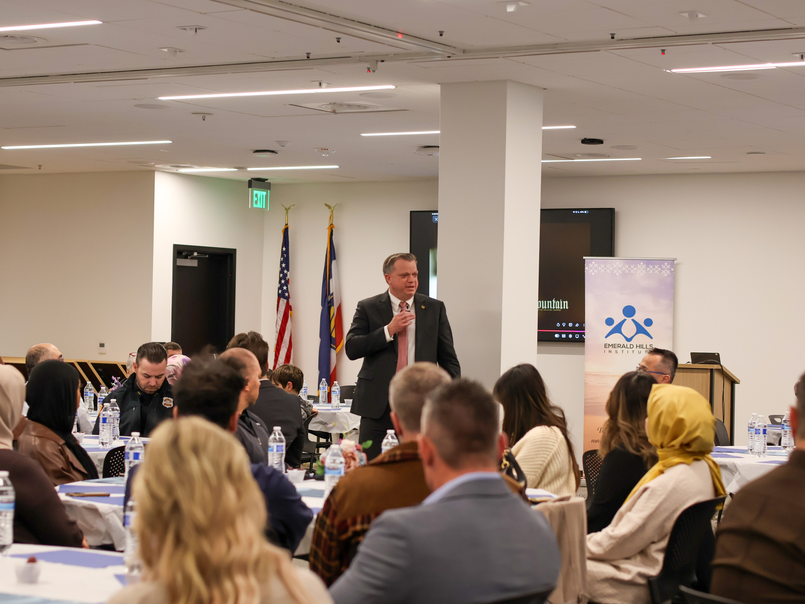 The February 19 Law Enforcement Iftar was a meaningful evening that brought together community members and law enforcement for connection and understanding. The program opened with welcoming remarks by Zeynep Kariparduc, Chair of the Emerald Hills Institute and Chief Tanner Jensen from Utah Department of Public Safety, followed by a short Ramadan video. Sergazi Nurbavliyev, Executive Director of Emerald Hills addressed the importance of mutual collaboration between community organizations and law enforcement agencies and expressed gratitude to law enforcement for keeping communities safe. Deputy Commissioner Tyler Kotter highlighted the importance of collaboration and mutual respect and thanked Emerald Hills Institute for keeping the iftar tradition with Utah Department of Public Safety over the years. After the call for prayer, guests broke their fast at sunset and shared dinner together.