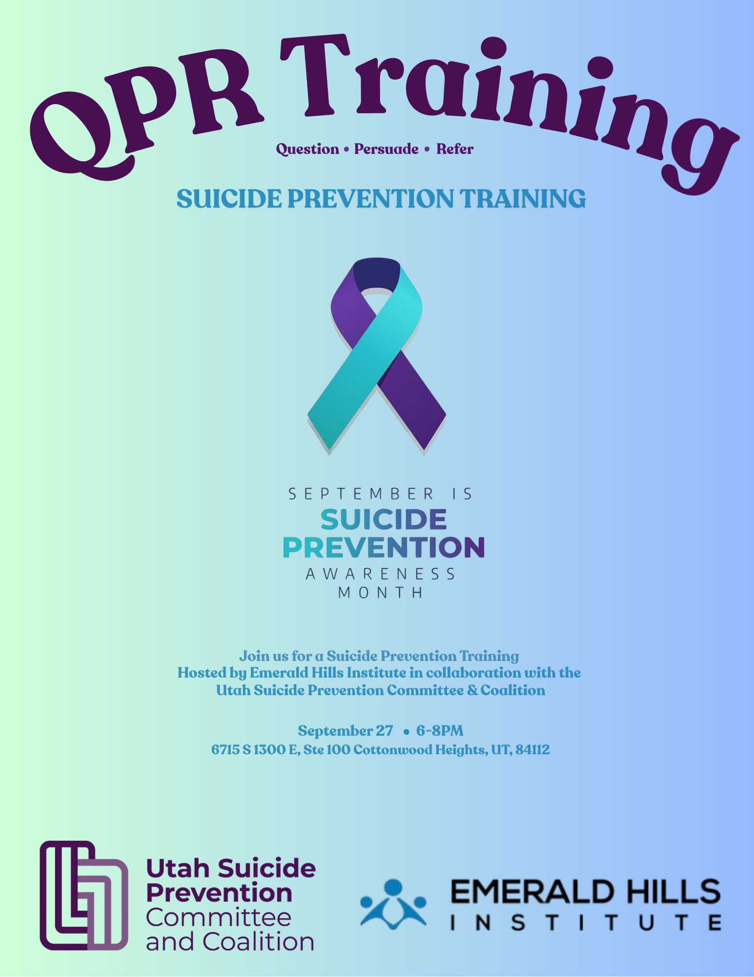 Join Us for QPR Suicide Prevention Training | September 27