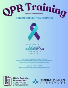 Dear Friends, September is Suicide Prevention Awareness Month, and we invite you to join us for an important community training on how to help save lives. QPR Training (Question •