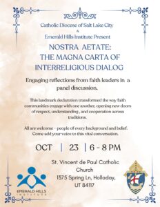 The Catholic Diocese of Salt Lake City and the Emerald Hills Institute invite you to a special event: Join us for an uplifting interfaith gathering as we explore Nostra